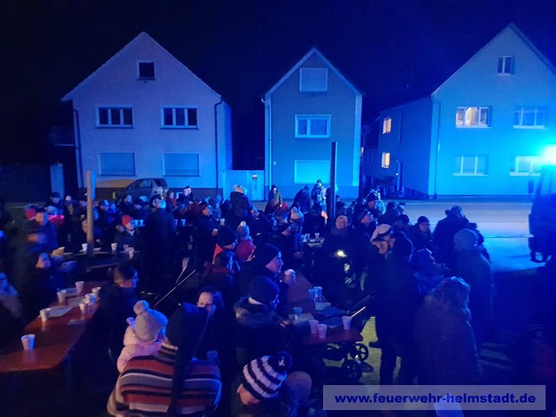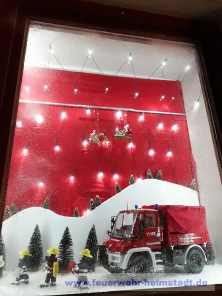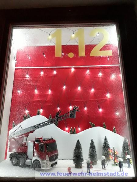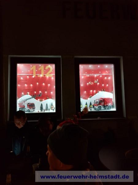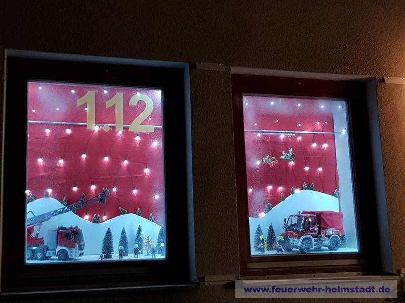 Die Feuerwehr Helmstadt gestaltete zum zweiten mal im Zeichen der europaweiten Notrufnummer 112 ein Adventsfenster in Helmstadt.