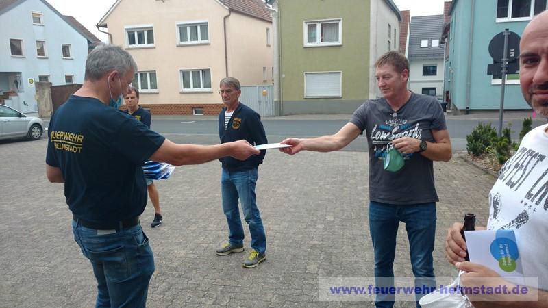 Der 1. Kommandant der FFW Helmstadt, Stefan Schmidberger, hat die Ehrenamtskarten an die aktiven Feuerwehrleute ausgehändigt.  Bei der Jahresabschlussfeier 2019 konnten sich die Aktiven in eine Liste eintragen und die Ehrenamtskarte beantragen. Diese wurde jetzt an die Feuerwehrleute weitergegeben, insgesamt waren es 28 Ehrenamtskarten.
