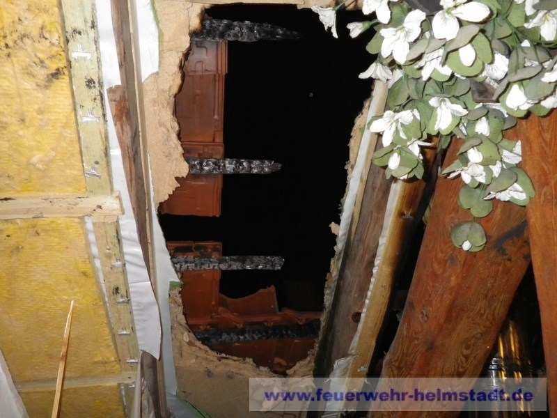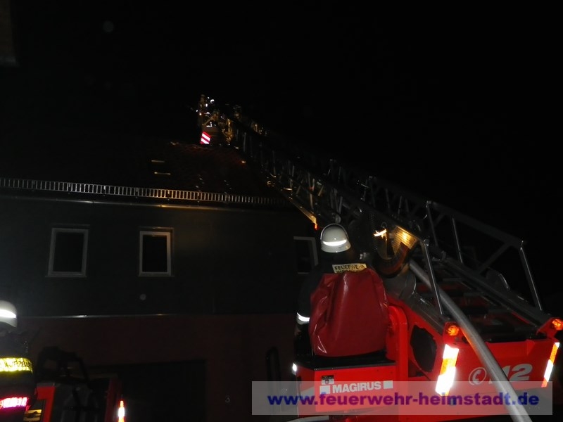 Mit diesem Stichwort wurden mehrere Feuerwehren nach Neubrunn alarmiert. Ein aufmerksamer Anwohner bemerkte den Brand und konnte die Bewohner wecken. Diese konnten sich ins freie retten. Beim Eintreffen der FF Helmstadt befanden sich keine Menschen und Tiere im Gebäude. Es wurde eine Wasserversorgung aufgebaut und mehrere Trupps gingen unter schwerem Atemschutz im Innenangriff vor. Am Brandherd schlugen Flamen nach außen durch das Dach. Diese wurden abgelöscht und anschließend der Dachstuhl von Innen und Außen mit mehreren Wärmebildkameras kontrolliert. Glutnester konnten gezielt geöffnet und abgelöscht werden. Abschließend wurde das Haus belüftet und ein Brandwache gestellt.