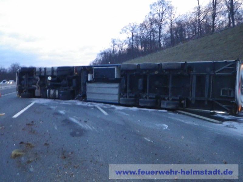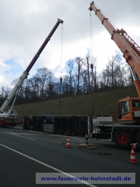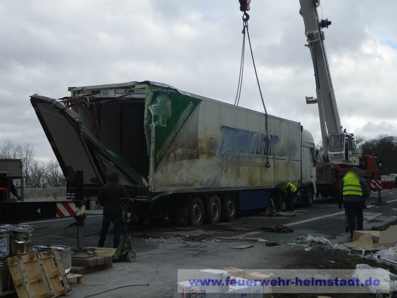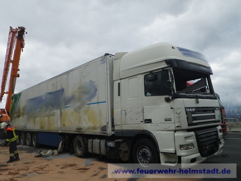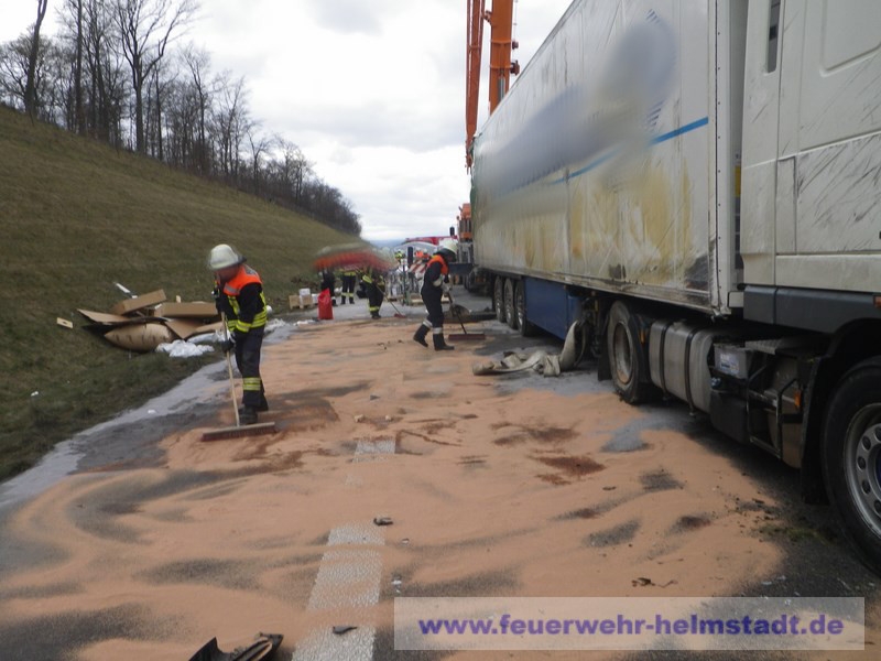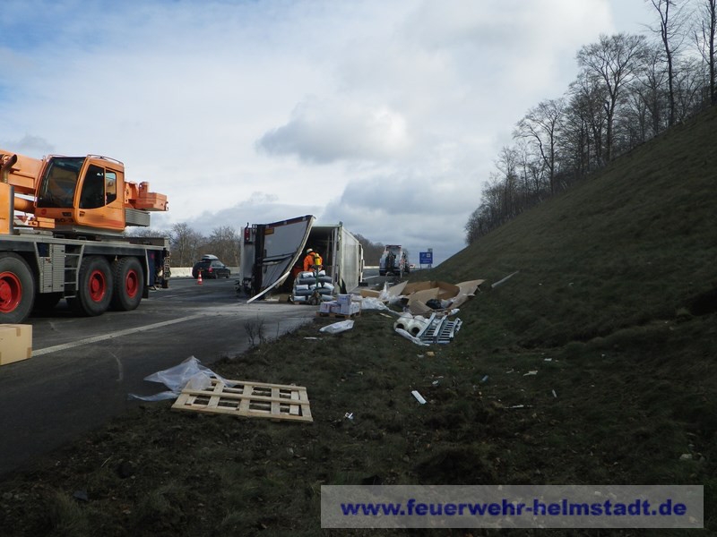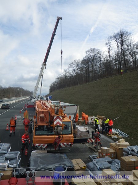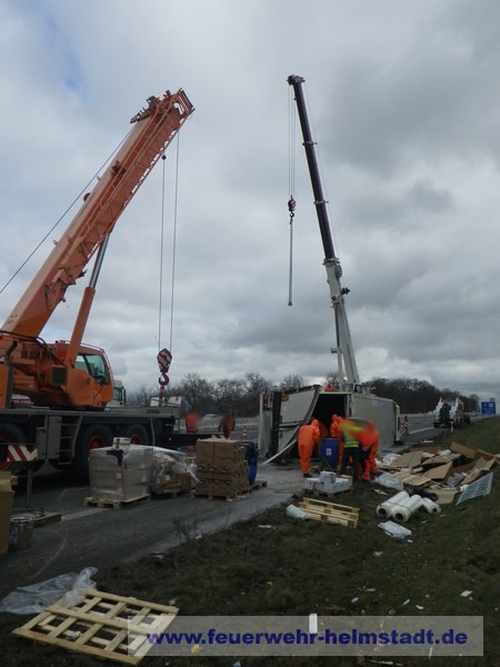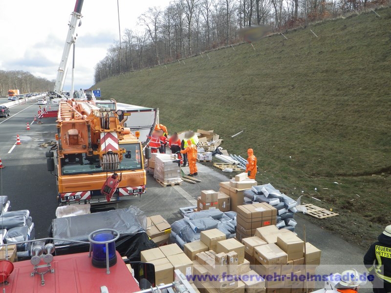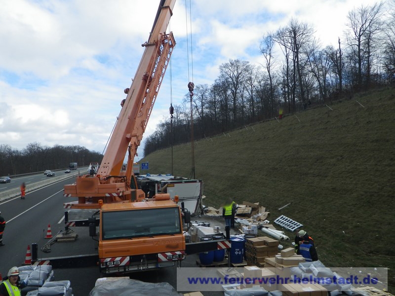 Auf der BAB 3 wurde ein Verkehrsunfall mit LKW gemeldet. Beim eintreffen der ersten Einsatzkräfte wurde die Unfallstelle abgesichert, ausgelaufene Betriebsstoffe abgebunden und die Ladungspapiere kontrolliert. Der 40 Tonner hatte Stückgut mit gefährlichen Stoffen geladen. Daraufhin wurden weitere Kräfte alarmiert. Unter umluftunabhängigen Atemschutz mit Schutzanzügen wurden der LKW ausgeladen und auf austretende Stoffe kontrolliert.