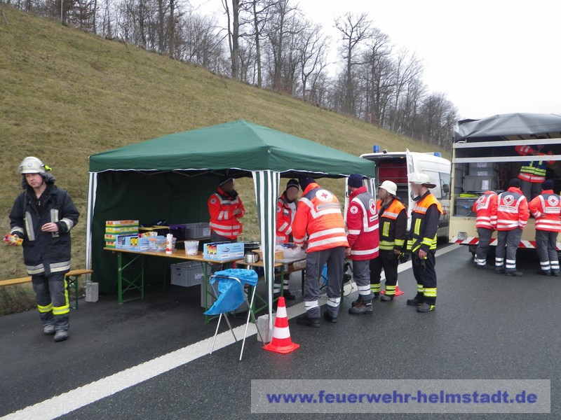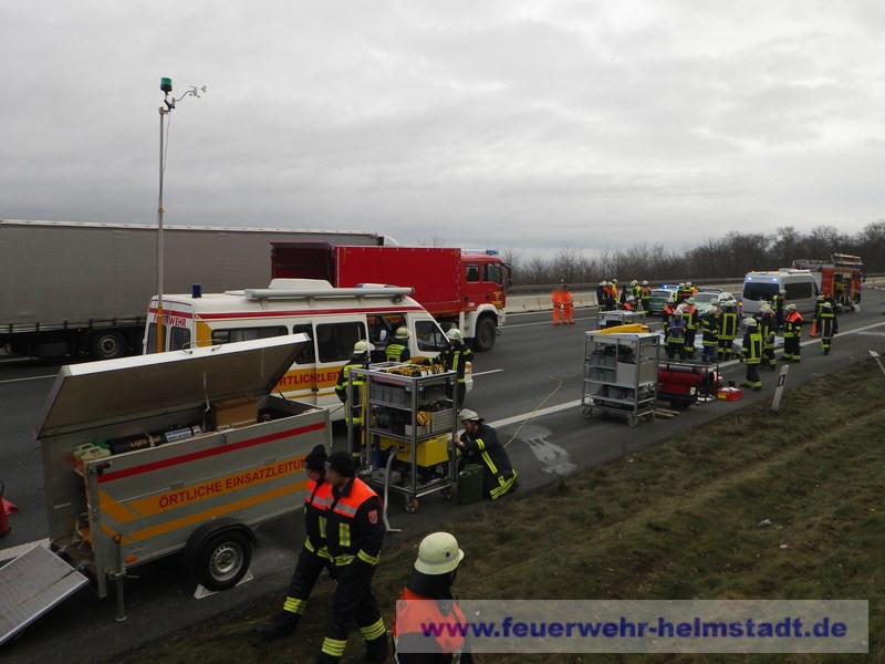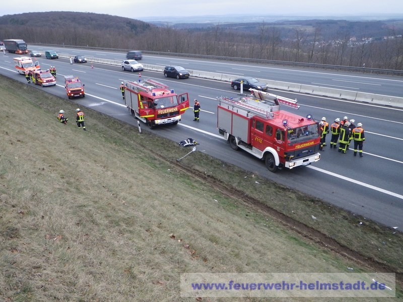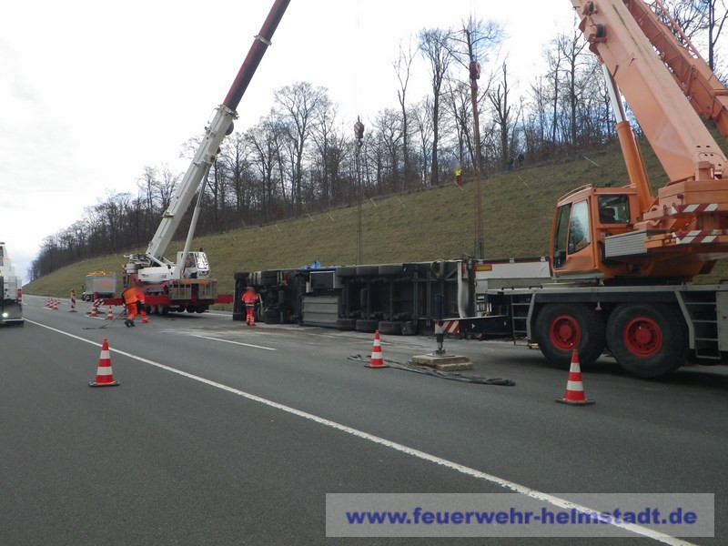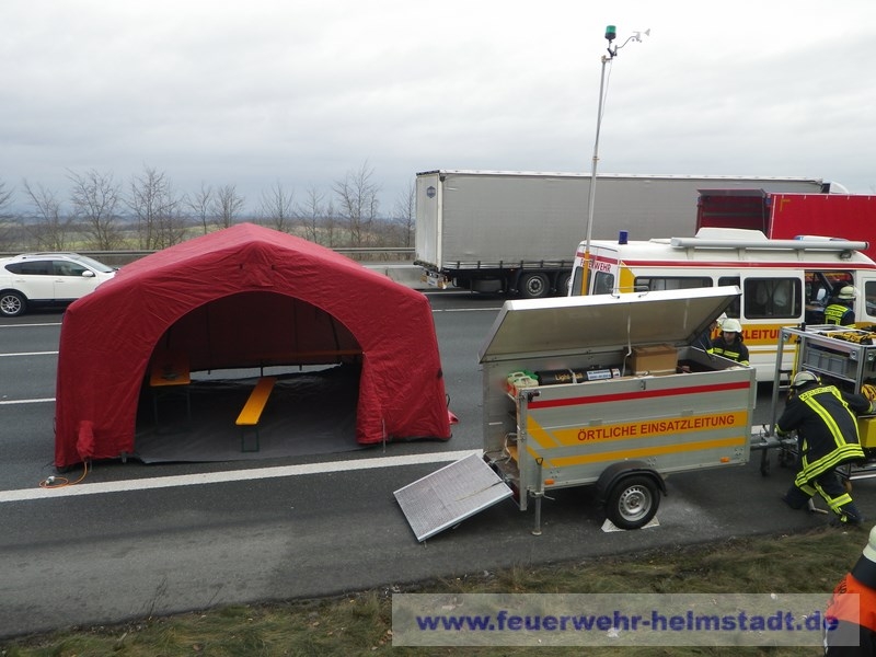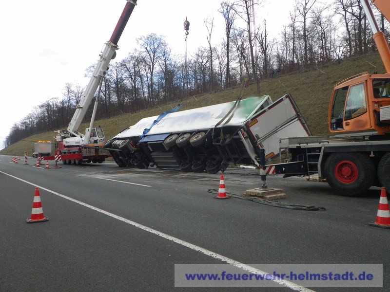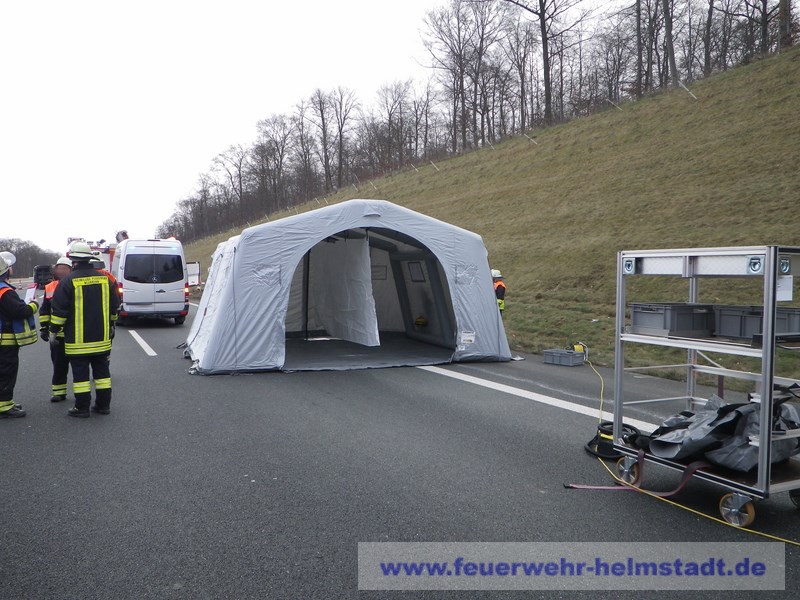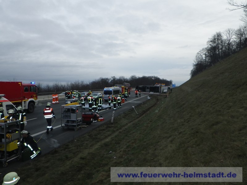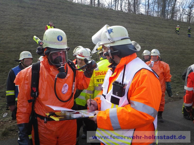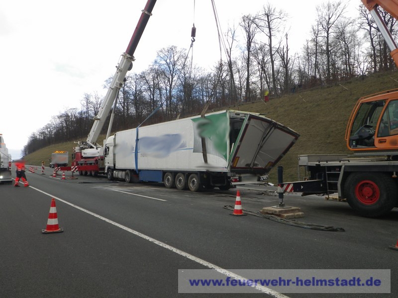 Auf der BAB 3 wurde ein Verkehrsunfall mit LKW gemeldet. Beim eintreffen der ersten Einsatzkräfte wurde die Unfallstelle abgesichert, ausgelaufene Betriebsstoffe abgebunden und die Ladungspapiere kontrolliert. Der 40 Tonner hatte Stückgut mit gefährlichen Stoffen geladen. Daraufhin wurden weitere Kräfte alarmiert. Unter umluftunabhängigen Atemschutz mit Schutzanzügen wurden der LKW ausgeladen und auf austretende Stoffe kontrolliert.