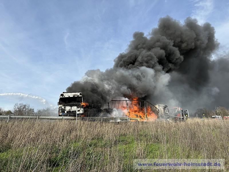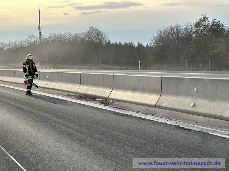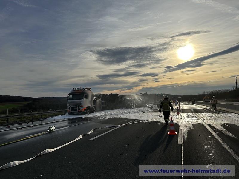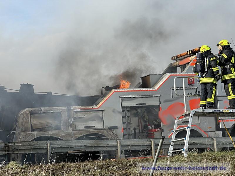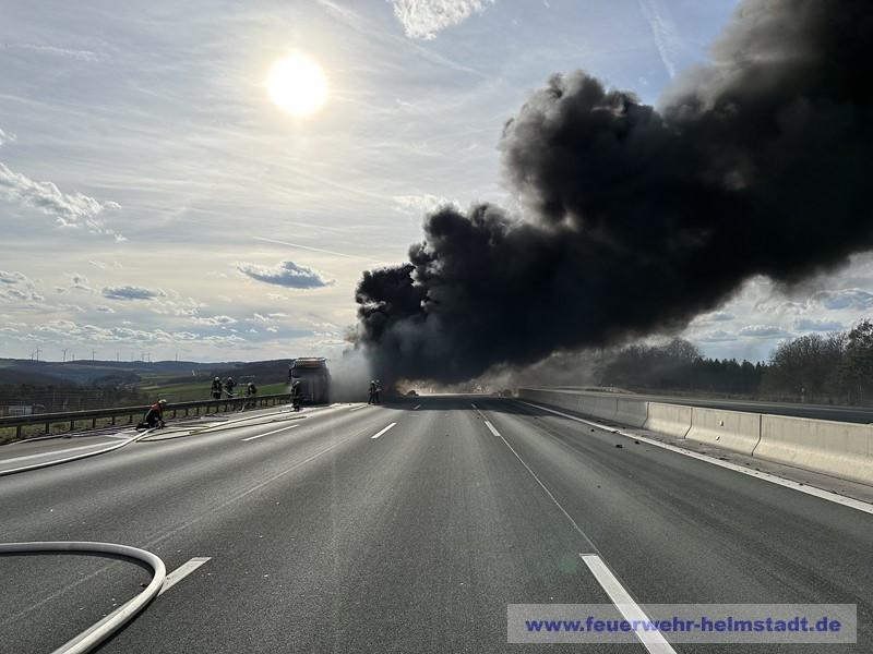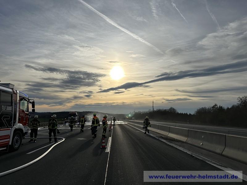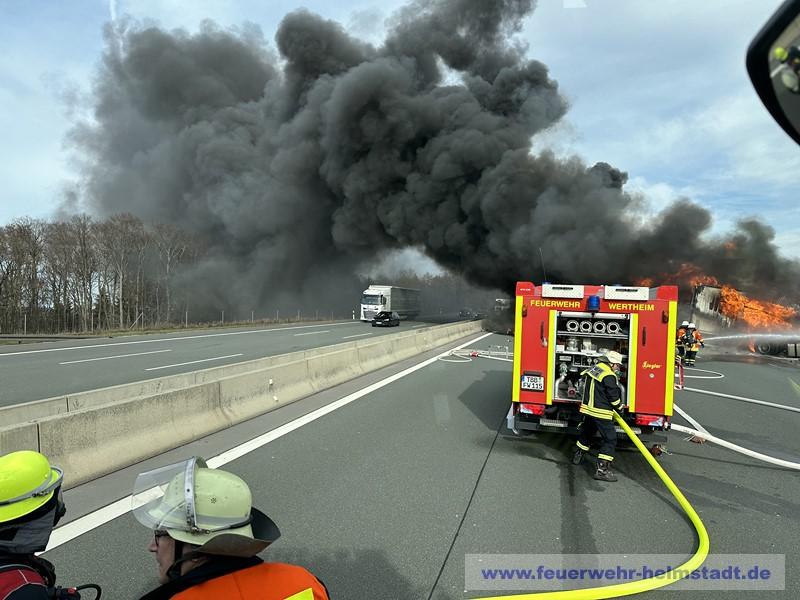 Die Einsatzstelle war beim eintreffen der FF Helmstadt in Richtung Würzburg bereits gesperrt. Durch die massive Rauchentwicklung und Sichtbehinderungen auf der Gegenspur wurde eine Sperrung der Fahrtrichtung Frankfurt über die Polizei eingerichtet.