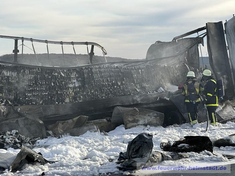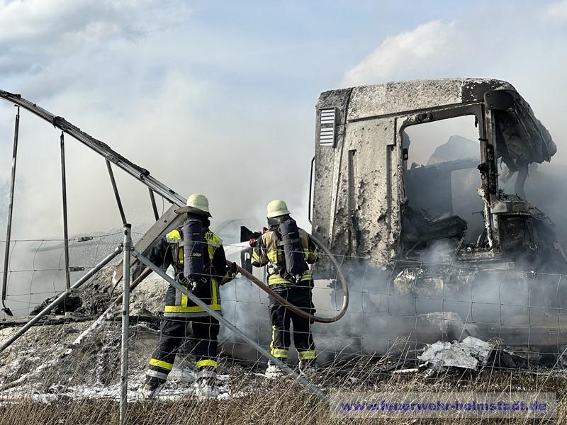 Unter schwerem Atemschutz wurde die Brandbekämpfung durchgeführt. Um die Wasserversorgung sicherzustellen wurde ein Pendelbetrieb mit mehreren Fahrzeugen von Helmstadt zur Einsatzstelle eingerichtet.