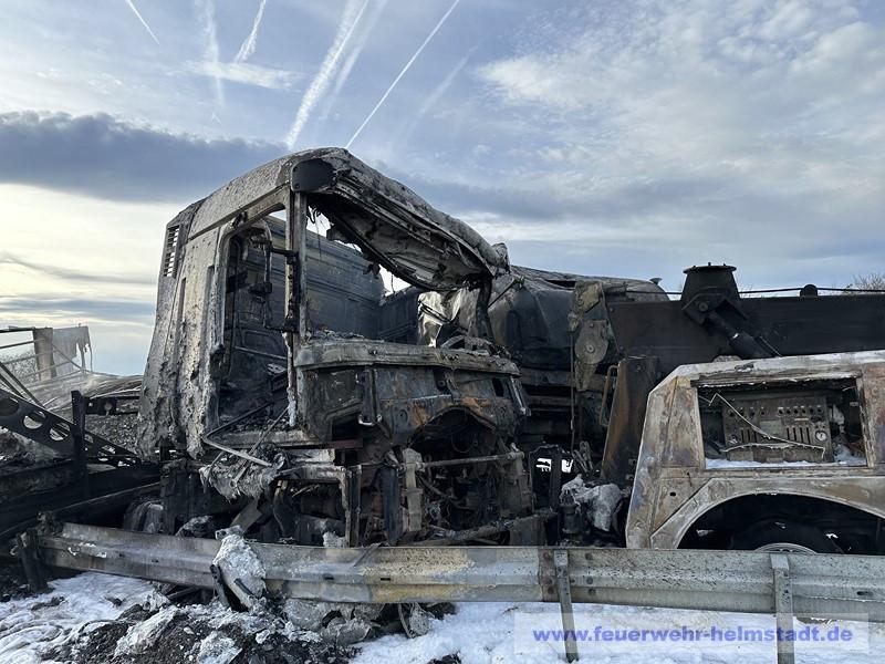 Am Unfall waren insgesamt 4 Lastkraftwagen beteiligt. Ein Fahrer konnte durch das schnelle eingreifen seines Kollegen gerettet werden.