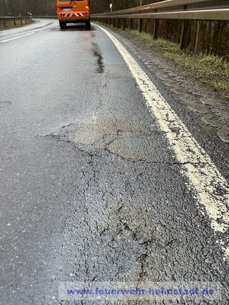 Die Feuerwehr wurde zu einer Ölspur auf die Wü 31 alarmiert. Nach der ersten Erkundung wurde eine weitere Feuerwehr nachalarmiert da sich die Ölspur bis ins Gewerbegebiet in Helmstadt zog. Nach Rücksprache mit dem Baulastträger wurde durch diesen eine Spezialfirma für die Straßenreinigung beauftragt. Die Feuerwehr sicherte die Gefahrenstelle ab.