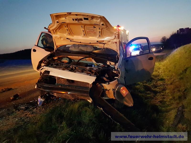 Die Feuerwehr wurde zu einem Verkehrsunfall mit brennendem PKW alarmiert. Die Einsatzstelle wurde abgesichert und ausgeleuchtet. Das Fahrzeug wurde mit der Wärmebildkamera kontrolliert. Der Verkehr wurde an der Unfallstelle vorbeigeleitet.