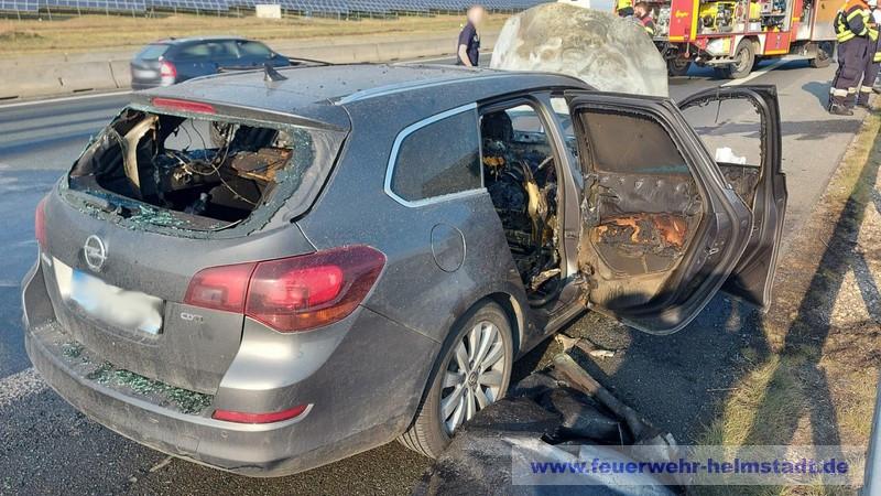Die Einsatzstelle wurde abgesichert. Das Fahrzeug wurde unter Atemschutz abgelöscht. Ausgelaufene Betriebsstoffe wurden abgebunden und die Fahrbahn gereinigt.
