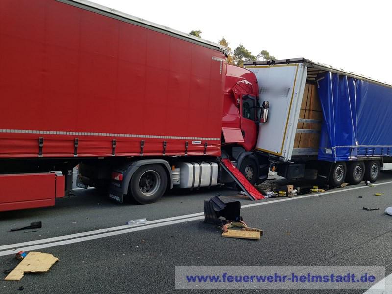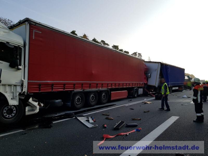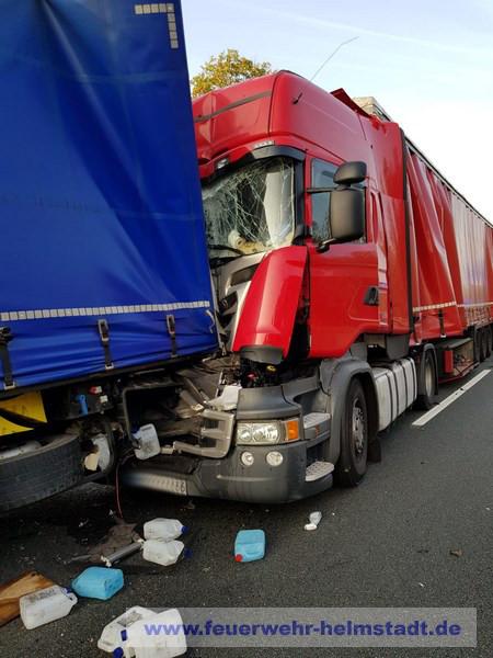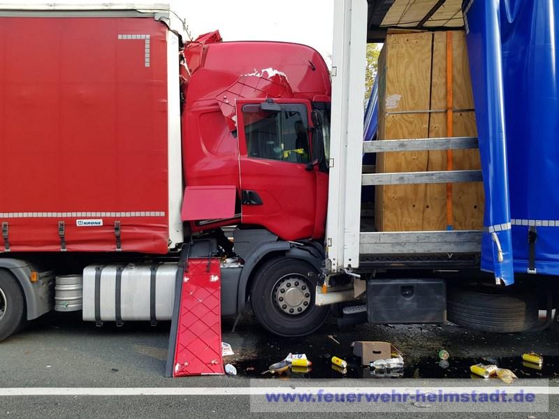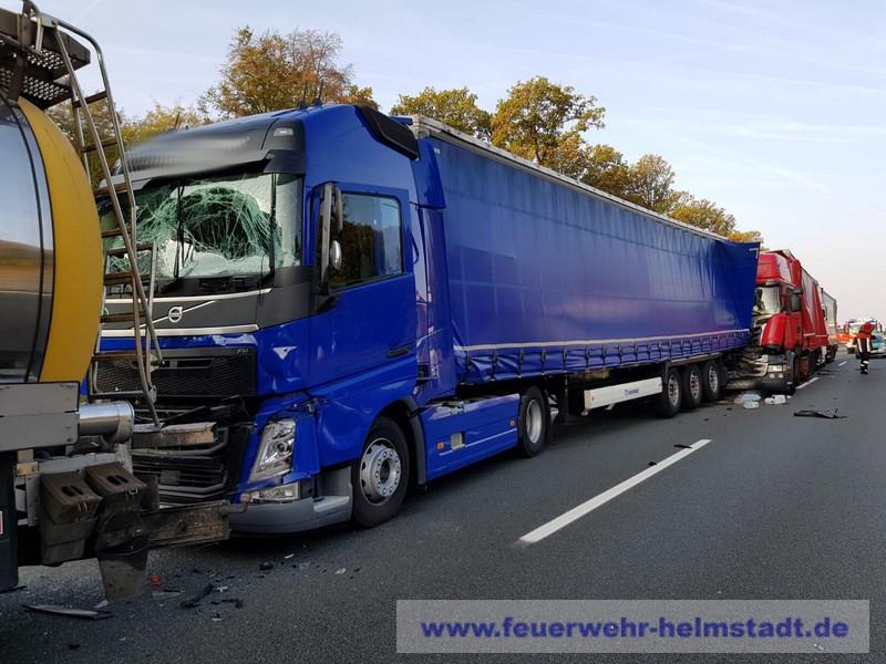 Nach einem Auffahrunfall mit 4 beteiligten LKW wurde die Einsatzstelle abgesichert. Die Reinigung der Fahrbahn wurde von einer Fachfirma übernommen.