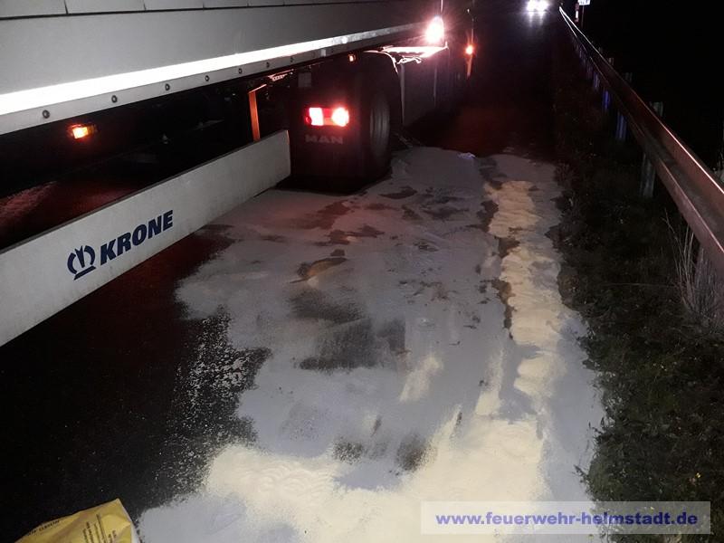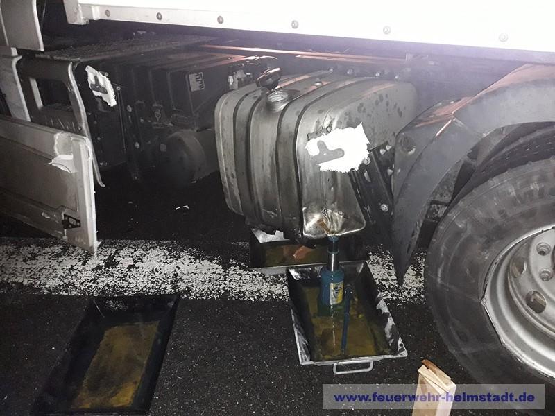 Bei einem Verkehrsufall wurde der Tank an einem LKW beschädigt und es trat Kraftstoff aus. Die Einsatzstelle wurde abgesichert und ausgeleuchtet. Der Tank wurde abgedichtet und auslaufender Kraftstoff aufgefangen. Die Fahrbahn wurde gereinigt und der Umweltschaden ans Wasserwirtschaftsamt gemeldet.