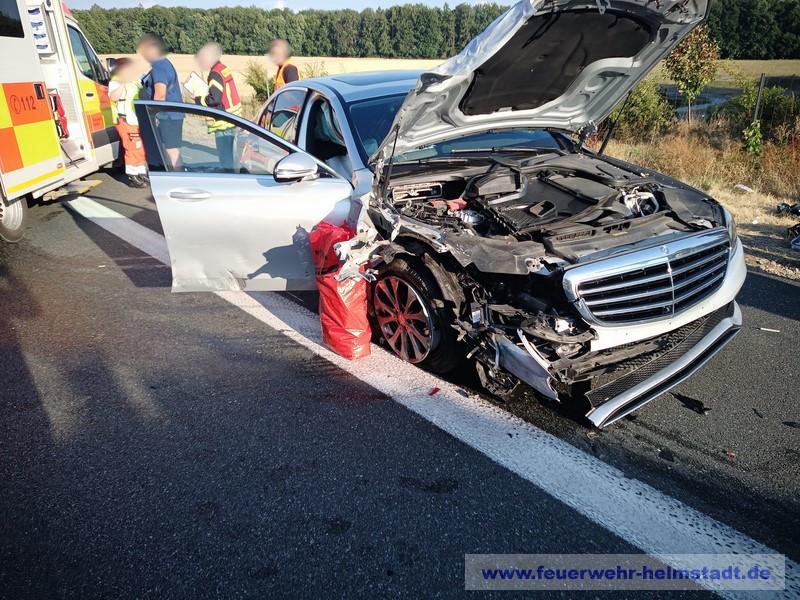 Auf der Autobahn kam es am Stauende zu einem Verkehrsunfall mit mehreren Fahrzeugen. Die Einsatzstelle wurde abgesichert und mehrere Patienten betreut.
