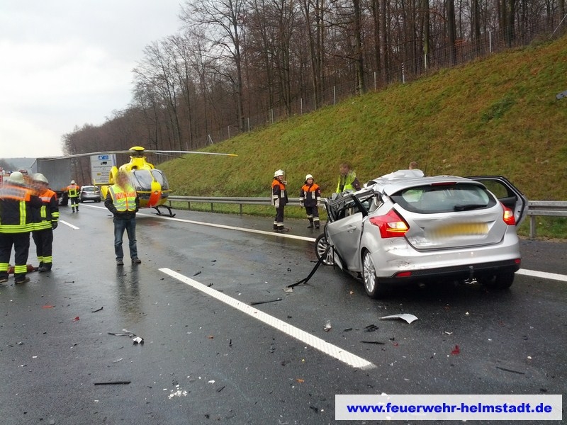 Beim eintreffen an der Unfallstelle konnte glücklicherweise festgestellt werden, dass keine Personen eingeklemmt sind. Ersthelfer konnten den Fahrer des PKW aus seinem Wrack befreien und an den Rettungsdienst übergeben. Die Feuerwehr sicherte die Unfallstelle ab und leitete den Verkehr auf einem Fahrstreifen an der Unfallstelle vorbei. Ausgelaufene Betriebsstoffe wurden abgebunden und die Fahrbahn gereinigt.