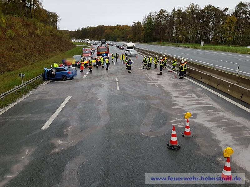 Auf der BAB 3 verunfallten zwei PKW. Die Einsatzstelle wurde abgesichert und mehrere Verletzte betreut. Auslaufende Betriebsstoffe wurden abgebunden und der Brandschutz erstellt.