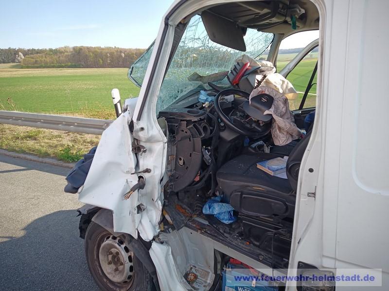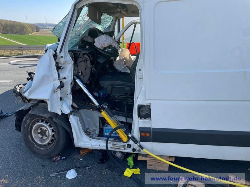 Die Feuerwehr wurde zu einem Verkehrsunfall auf die BAB 3 alarmiert. Ein Transporter ist mit einem LKW zusammengestoßen und der Fahrer wurde im Transporter eingeklemmt. Die Einsatzstelle wurde abgesichert und die Person mit hydraulischem Rettungsgerät aus seinem Fahrzeug befreit.