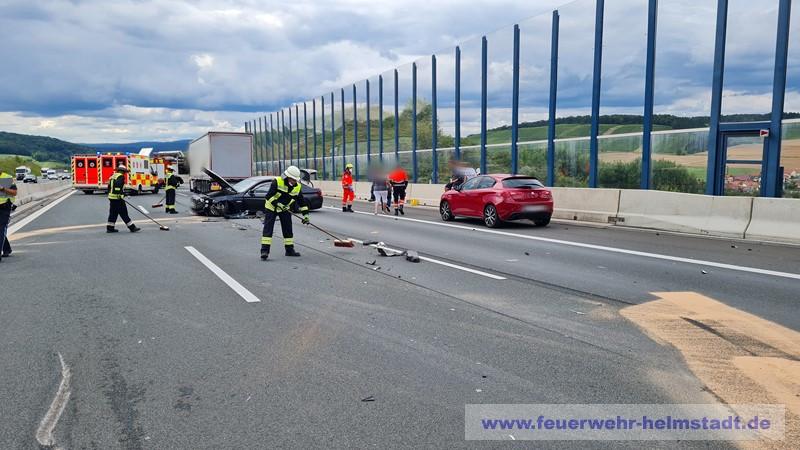 Die Feuerwehr wurde zu einem Unfall auf die BAB 3 alarmiert. Die Einsatzstelle wurde bereits durch die Kollegen aus Wertheim abgesichert. Auslaufende Betriebsstoffe wurden abgebunden, beteiligte Personen betreut und die Fahrbahn gereinigt.
