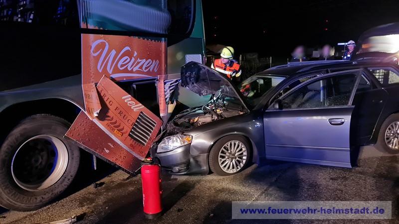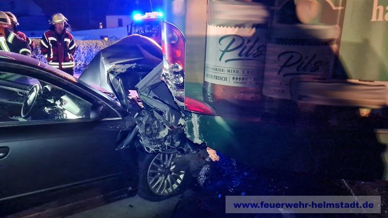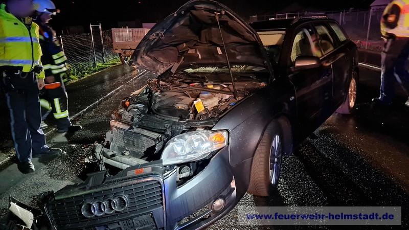Am Ortseingang kam es zu einem Unfall mit zwei Fahrzeugen. Die Feuerwehr sicherte die Einsatzstelle ab und leuchtete diese aus. Die Fahrzeuge wurden kontrolliert und der Brandschutz sichergestellt. Ein Unfallbetreiligter wurde durch den HVO Helmstadt bis zum eintreffen des Rettungsdienstes betreut. Ausgelaufene Betriebsstoffe wurden abgebunden und die Fahrbahn gereinigt.