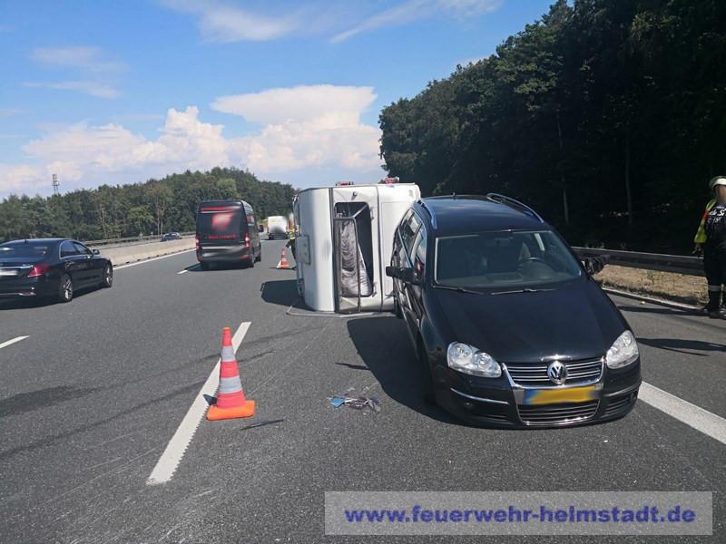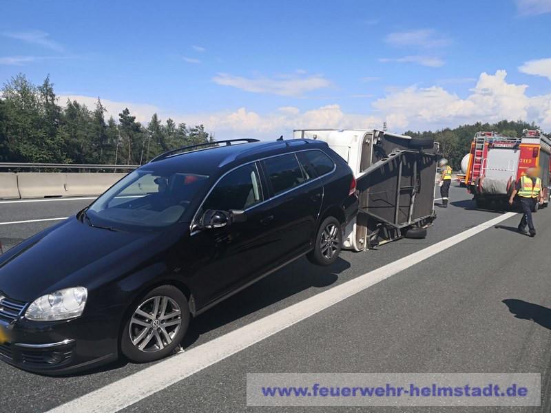 Auf der BAB 3 ereignete sich ein Verkehrsunfall mit einem PKW-Gespann. Die Einsatzstelle wurde abgesichert und das Bergungsunternehmen unterstützt.