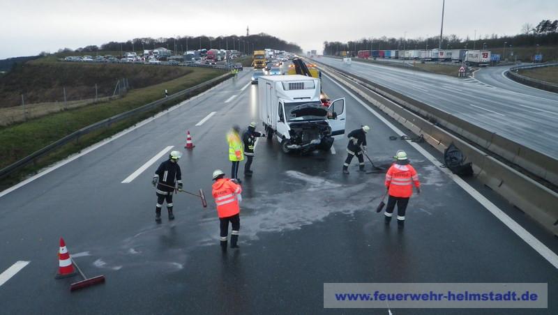 Auf der BAB 3 wurde ein Verkehrsunfall mit eingeklemmter Person gemeldet. Die Einsatzstelle wurde abgesichert, die Person war nur im Fahrzeug eingeschlossen und konnte mit der Steckleiter befreit werden. Abschließend wurde die Fahrbahn gereinigt.