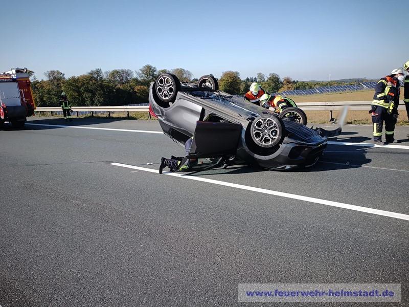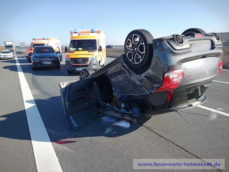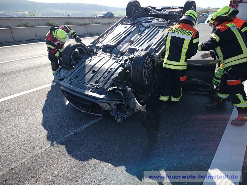 Die Feuerwehr wurde auf die BAB 3 alarmiert. Die Einsatzstelle wurde abgesichert und erkundet. Nach einem Überschlag lag ein PKW auf dem Dach. Die Insassen konnten durch Ersthelfer aus dem Fahrzeug befreit werden. Diese wurden durch den HVO betreut und die Fahrbahn gereinigt.