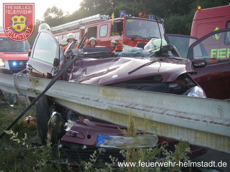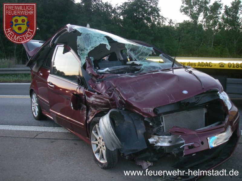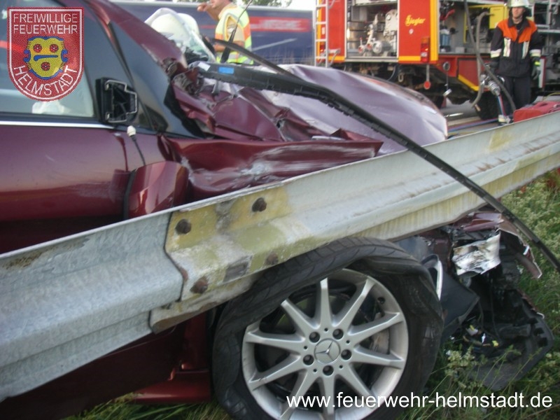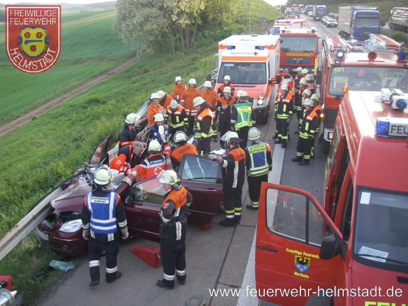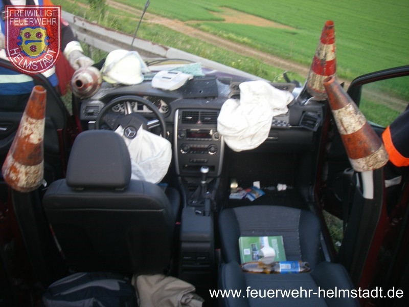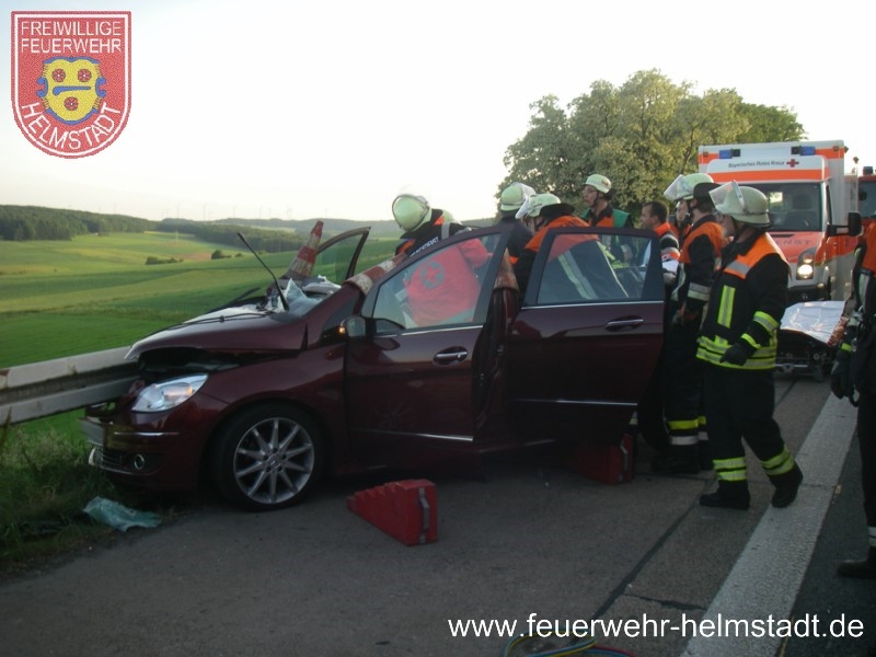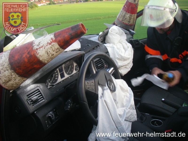 Die FF Helmstadt kam als erste Wehr an der E-stelle an und sicherte diese gegen den fließenden Verkehr ab. Gleichzeitig wurde hydraulisches Rettungsgerät aufgebaut und Brandschutz erstellt.