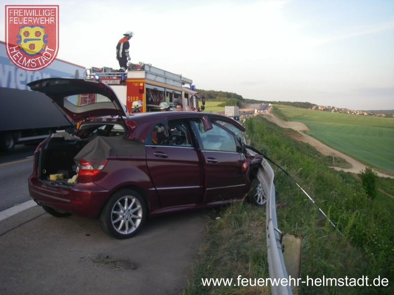 Bei einem Verkehrsunfall auf der BAB 3 Richtung Würzburg kam es zu einem Unfall. Ein PKW fuhr erst auf einen LKW auf und krachte anschließend in die Leitplanke.
