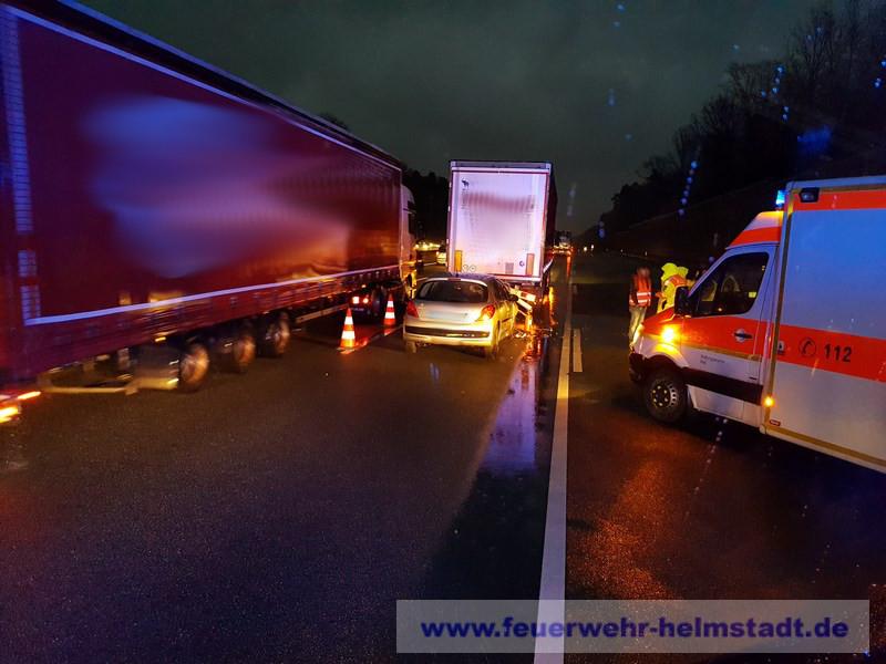 Auf der BAB 3 fuhr ein PKW auf einen LKW auf. Die Feuerwehr sicherte die Einsatzstelle ab. Die Reinigung der Fahrbahn übernahm die Autobahnmeisterei.