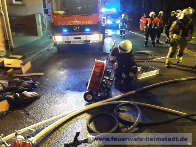 Unter schwerem Atemschutz gingen mehrere PA Trupps in das Haus vor. Das Feuer wurde abgelöscht, das Haus abgesucht und kontrolliert. Zum entrauchen des Gebäudes kamen Überdrucklüfter zum Einsatz.