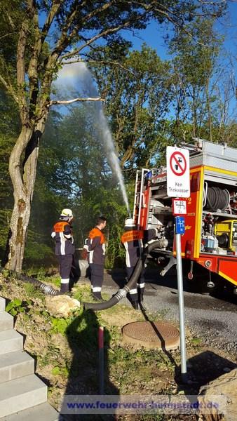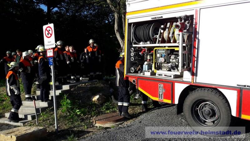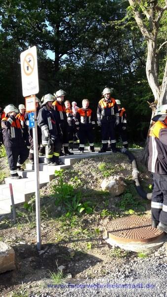 Im Rahmen einer Gruppenübung wurde gemeinsam mit der Wehr aus Holzkirchhausen die neu installierte Löschwasser Zisterne am Sportgelände besichtigt.