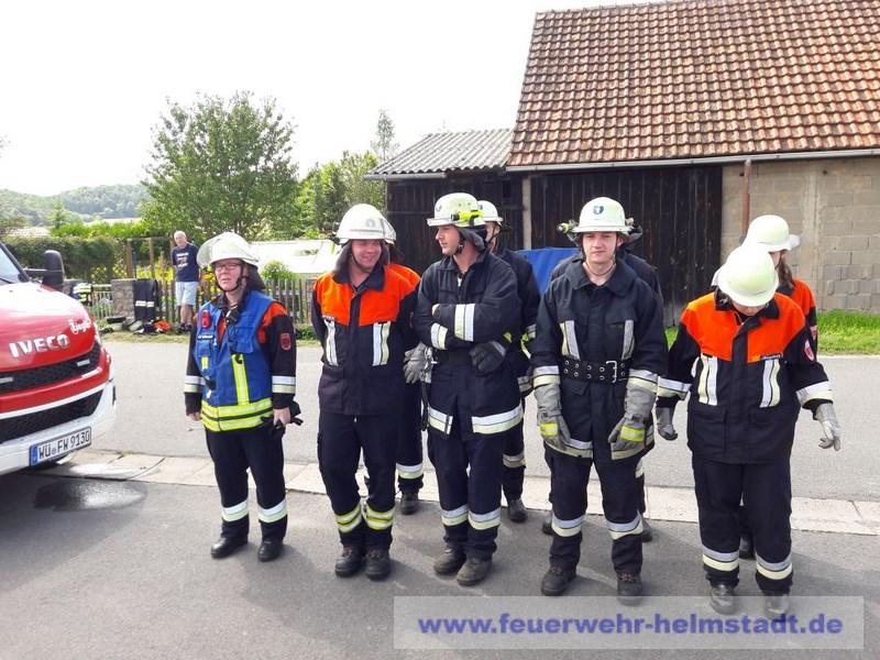 1. Vorsitzende der Freiwilligen Feuerwehr Helmstadt, Joachim Endres, waren mit der Leistung mehr als zufrieden und lobten die sehr gute Zusammenarbeit beider Wehren. Nur intensives Training und eine regelmäßige Weiterbildung, die die Feuerwehrleute in ihrer Freizeit absolvieren, sorgt dafür, dass im Ernstfall jeder Handgriff sitzt.