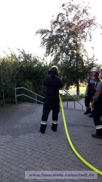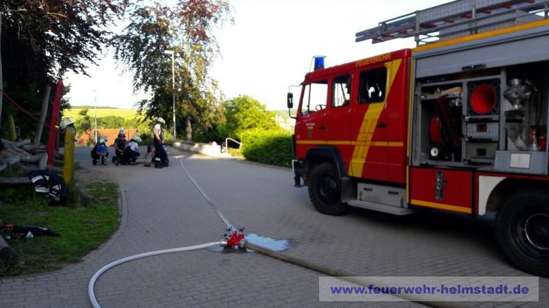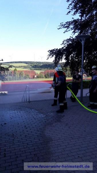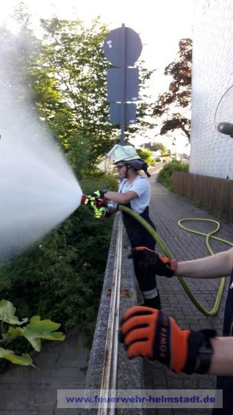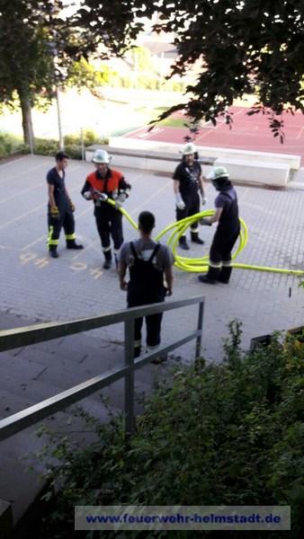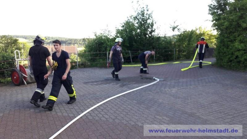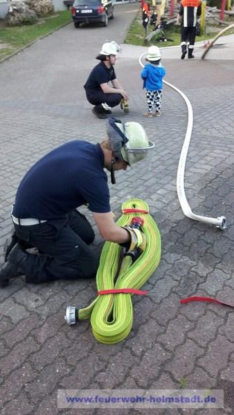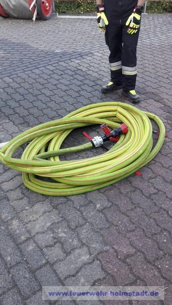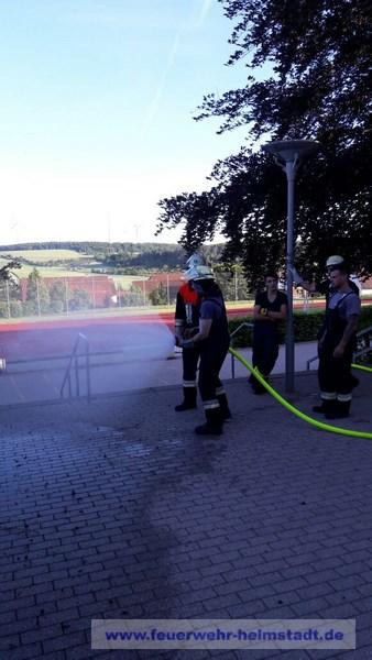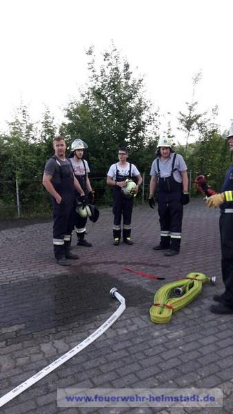 Die Atemschutzgruppe übte den Umgang und die Handhabung eines Schlauchpaketes für den Einsatz. Kombiniert wurde die Übung mit einem Strahlrohrtraining.